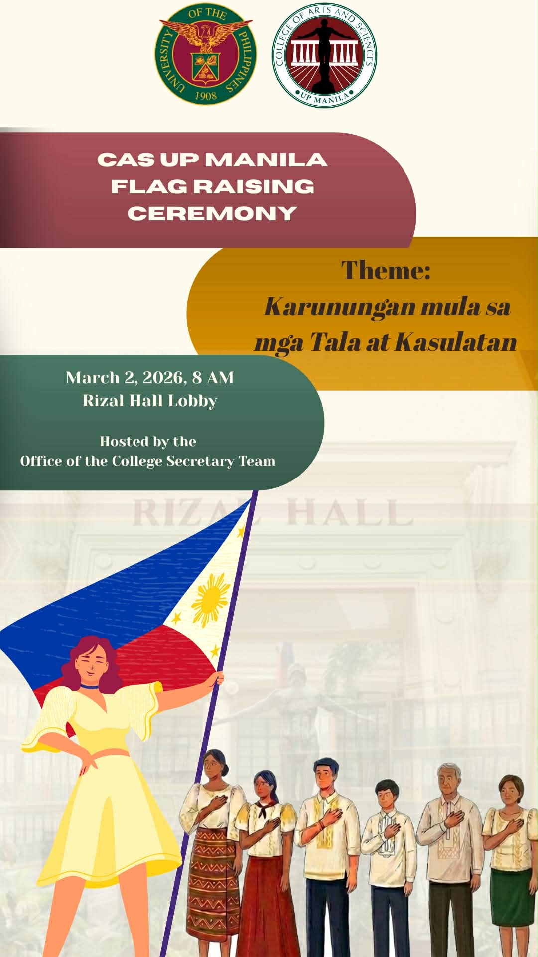 Something meaningful is rising this March… Join us for the CAS UP Manila Flag Raising Ceremony Theme: Karunungan mula sa ...