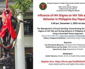 Invitation to an Online Seminar: “Influence of HIV Stigma on HIV Talk and Testing Behavior in Philippine Key Populations” Hosted by the Graduate Program in Health Policy Studies (Health Social Science), together with the Office of the Gender Program of the College of Arts and Sciences December 1, 2025 (Monday) 5:30 PM Via Zoom To […]